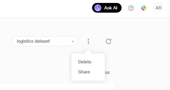 **Saved dashboard context menu**