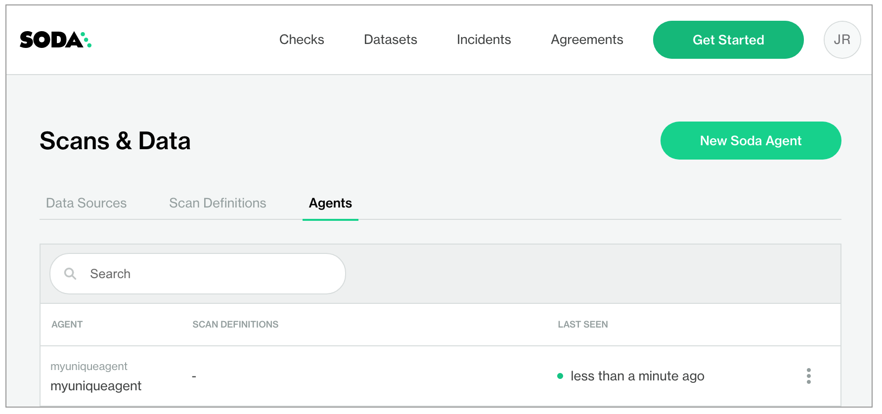 Verify the existence of your new Soda Agent in your Soda Cloud account.
