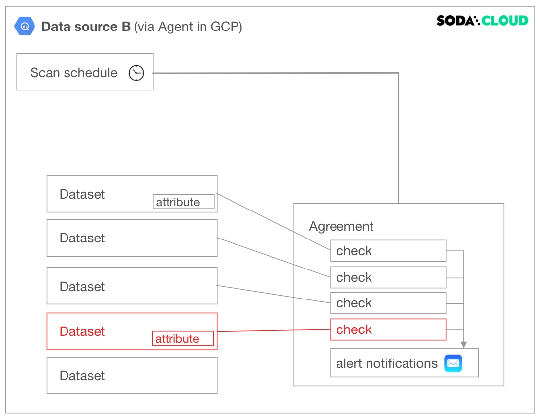 agreements in which you write checks to define what good data looks like. Agreements also specify where to send alert notifications when a check result warns or fails, such as to a Slack channel in your organization.