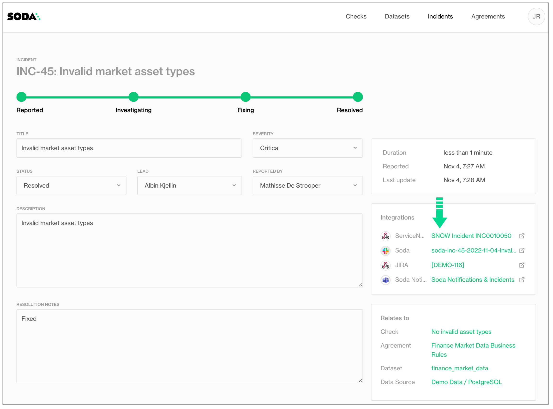Learn more about creating, tracking, and resolving data quality Incidents.