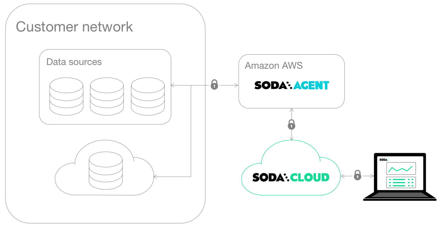 Soda hosts agents in a secure environment in Amazon AWS. As a SOC 2 Type 2 certified business, Soda responsibly manages Soda-hosted agents to ensure that they remain private, secure, and independent of all other hosted agents. See Data security and privacy for details.