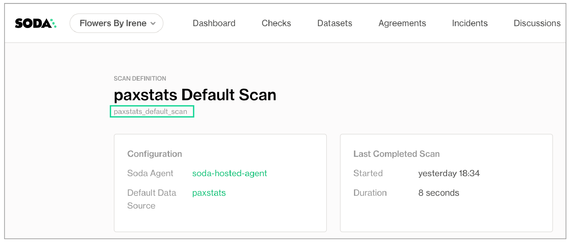 In your Soda Cloud account, refresh the scan definition page to display the results of the scan you ran remotely.