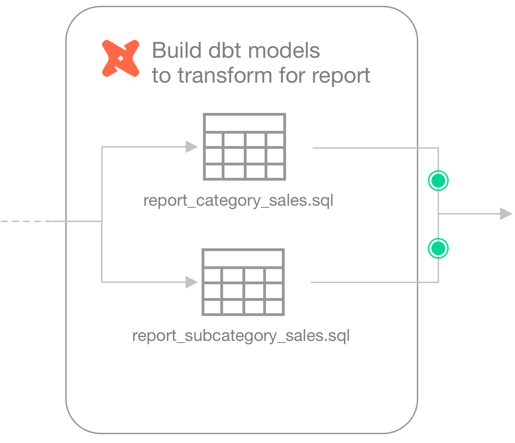 For context, this guide presents an example of a Data Engineer at a small firm who was tasked with building a simple products report of sales by category for AdventureWorks data. This Engineer uses dbt to build a simple model transformation to gather data, then builds more models to transform and push gathered information to a reporting and visualization tool. The Engineer uses Airflow for scheduling and monitoring workflows, including data ingestion and transformation events.