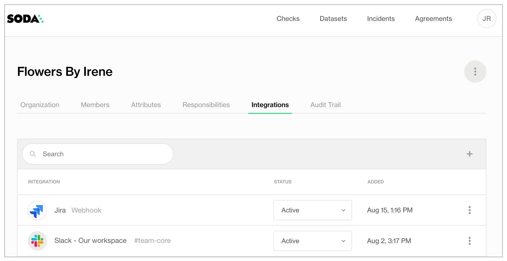 In your Soda Cloud account, navigate to your avatar > Organization Settings, then select the Integrations tab.
