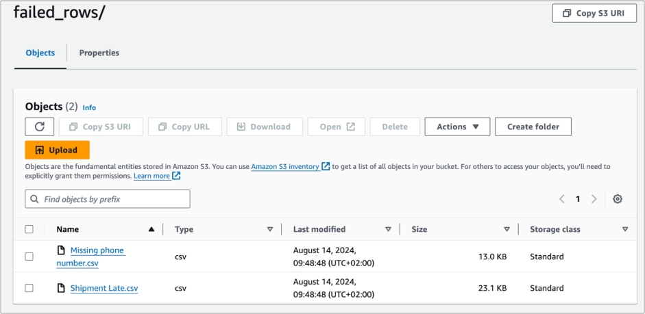 To keep sensitive customer data secure, the Data Engineers in this example chose to reroute any failed row samples that Soda implicitly collected for missing, validity, reference checks, and *explicitly* collected for failed row checks to an S3 bucket. Those with access to the bucket can review the CSV files which contain the failed row samples which can help Data Engineers investigate the cause of data quality issues.