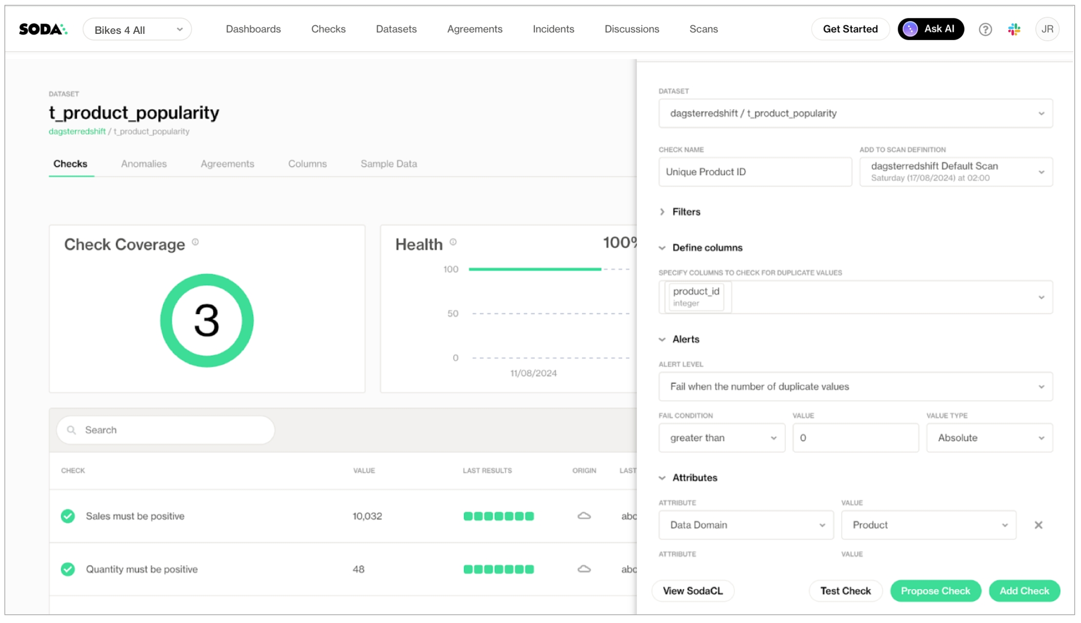 Learn more about integrating with Atlan to review Soda check results from within the catalog.